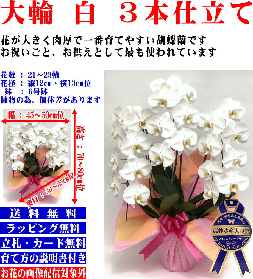 胡蝶蘭 3本立 大輪(21〜23輪) お祝い お供え 開店祝 開業祝 開院祝 胡蝶蘭 お祝い 胡蝶蘭 開店祝 当選祝 胡蝶蘭専門店フォレストナーサリー 森洋蘭 お盆お彼岸叙勲祝就任祝進発着任退職還暦米寿新築祝胡蝶蘭花ギフト母の日敬老の日胡蝶蘭送料無料